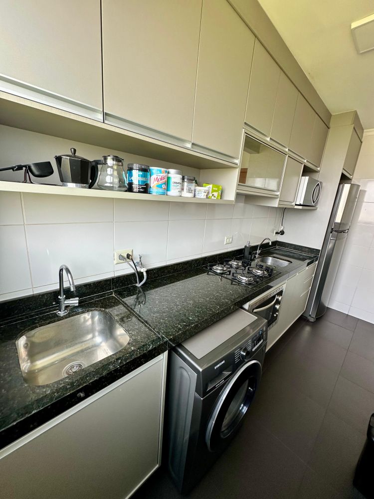 ✔️ Pronto para morar: sofá retrátil, mesa com 4 cadeiras, cooktop, forno elétrico, máquina lava e seca, rack e fechadura eletrônica com senha configurável