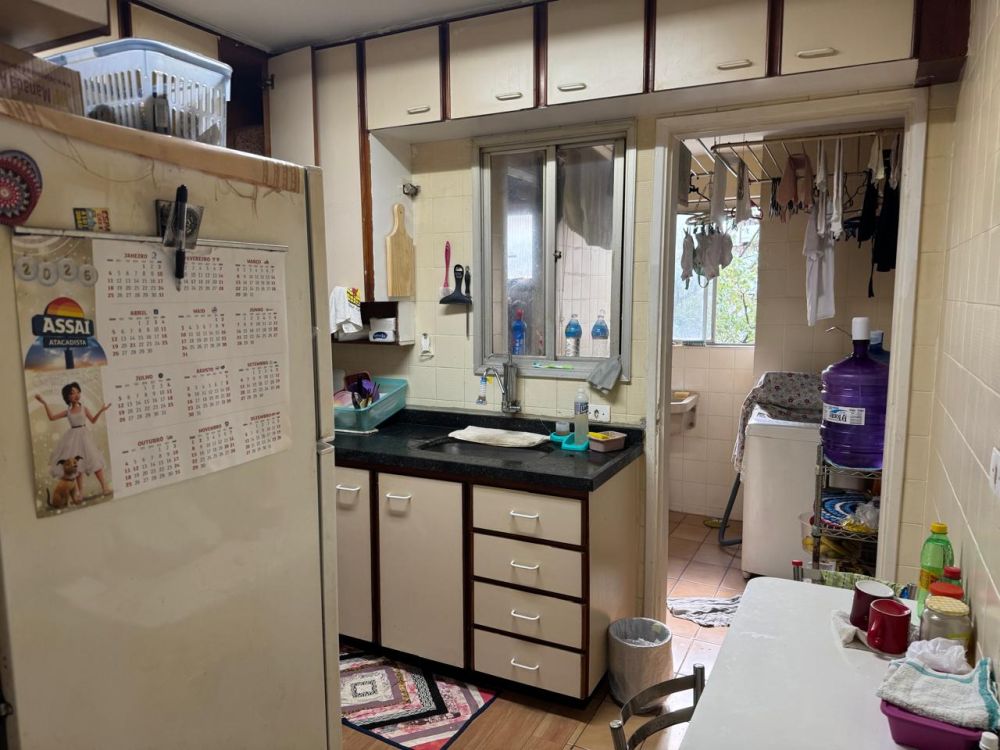 1 suíte, 2 quartos, sala ampla, banheiro social, cozinha, área de serviço, 01 vaga de garagem.